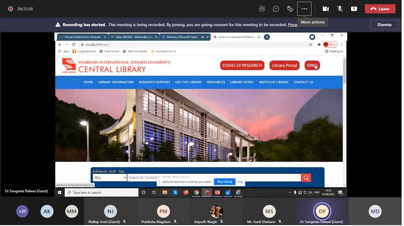 Session on Overview on library facility and policies of SIU Dr. Sangeeta Paliwal, Librarian, SIU, (Date: 03/07/2024)