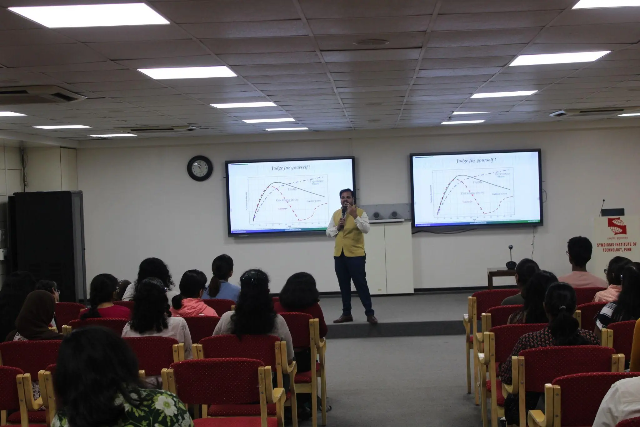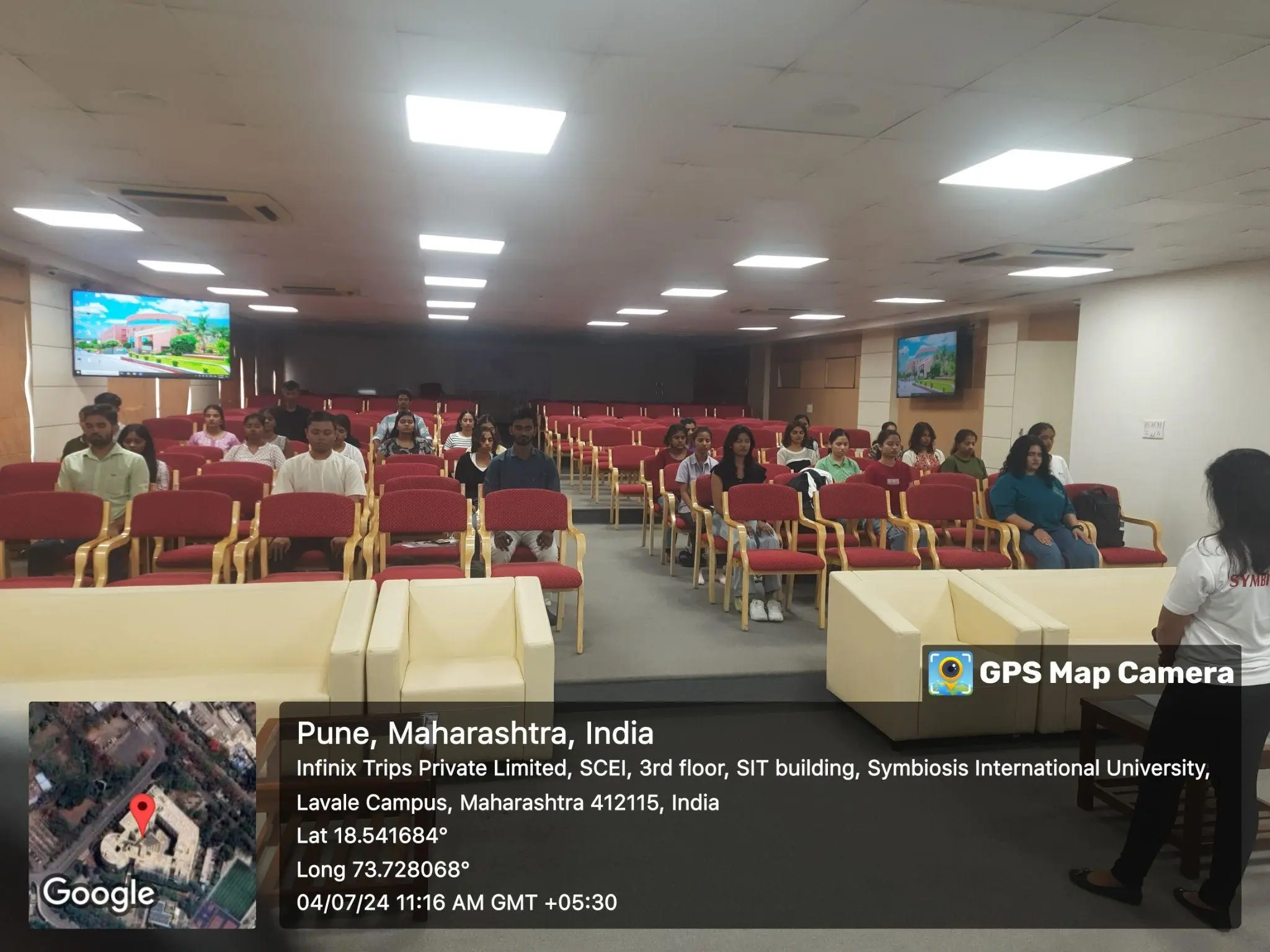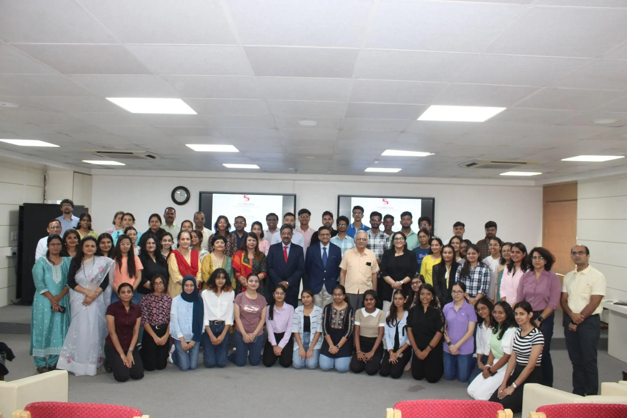 One-week induction programme for the freshers included different sessions and activities; Gender sensitization, Emotional Well-being, Biodiversity & Sustainability, Faculty interaction, Alumni interaction, interaction with senior students, Guest lectures, Yoga and meditation, Creative Arts & culture, Ice breaking sessions, Campus Tour and Pune City Tour.
